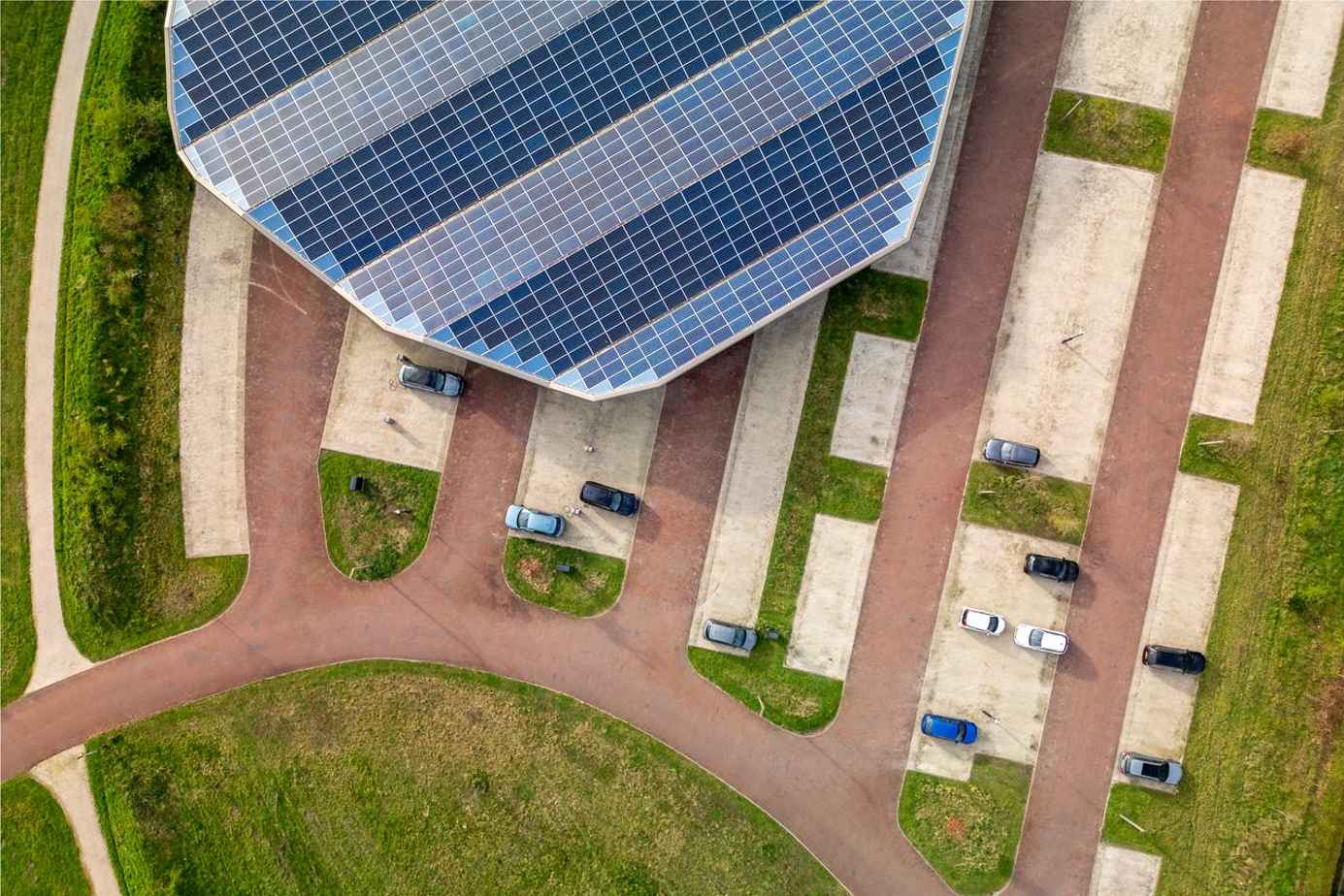 Das Gebäude kombiniert innovative Technologien für nachhaltigen Betrieb und Energieeffizienz: Auf dem Parkhausdach erzeugen Photovoltaikanlagen Strom, während Wärmepumpen und ein unterirdisches Speicher¬system Wärme und Kälte bereitstellen. Smart-Building-Systeme regeln Beleuchtung und Raumklima automatisch, und über 100 Ladepunkte für Elektrofahrzeuge mit bidirektionalem Management machen das Gebäude fit für die Mobilität der Zukunft.