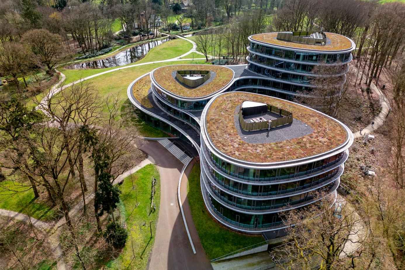 Die Triodos Bank Zentrale in Driebergen-Rijsenburg zeigt in der Praxis, wie so ein Projekt umgesetzt werden kann. Mitten in einem Naturschutzgebiet erhebt sich das 12.500 Quadratmeter große Hauptquartier, entworfen von RAU Architects und Ex Interiors.